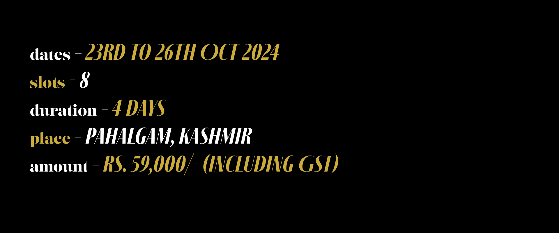 Fee does not include travel to the Kashmir. You will have to get there on your own and back.