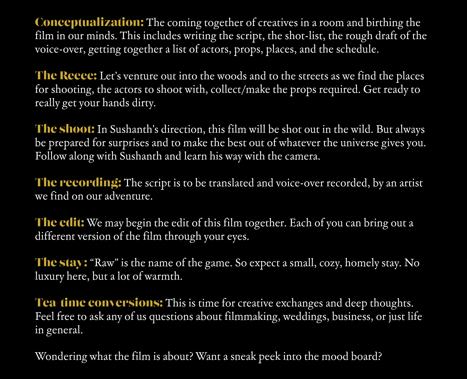 We request that all films or photos taken during the experience, BTS or otherwise, when used on social media, be tagged to Sushanth Bhat Films