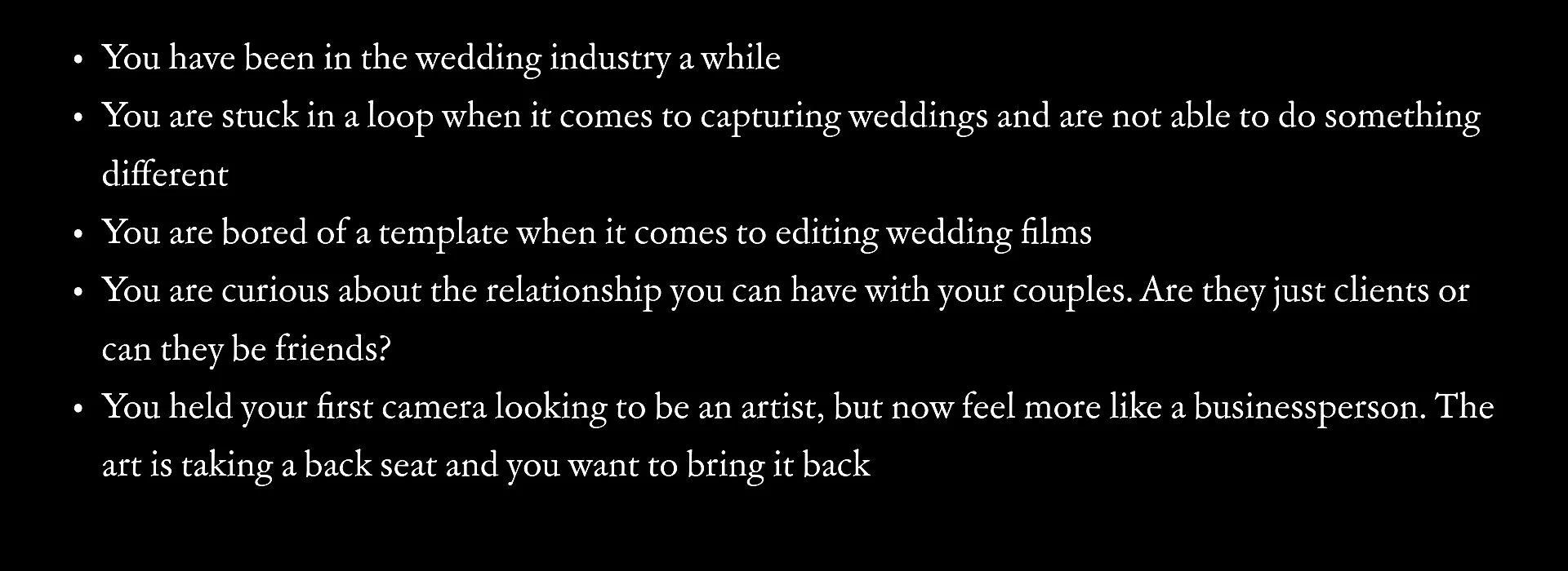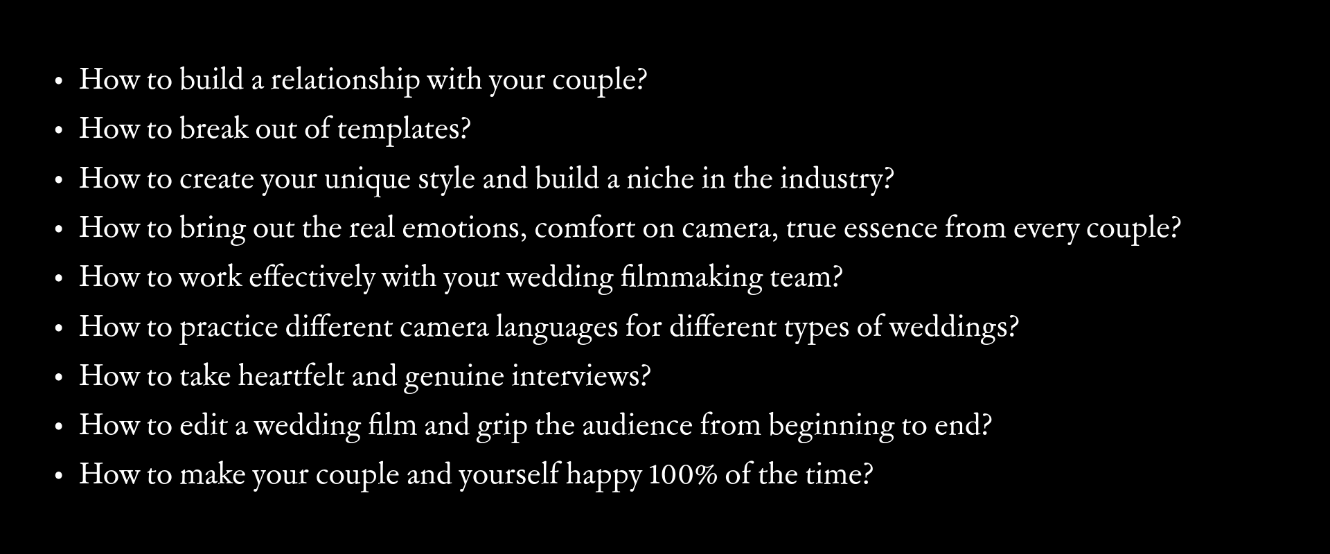 WEDDING FILMMAKING MASTERCLASS